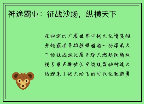 神途霸业:征战沙场,纵横天下